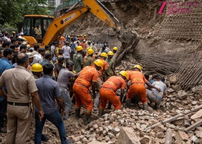 गुरुग्राम/भिवाड़ी: हरियाणा के गुरुग्राम में सोमवार रात बड़ा हादसा हो गया. ग्लोबल सिग्नेचर सोसाइटी में निर्माणाधीन प्रोजेक्ट की दीवार अचानक से गिर गई. हादसे में 7 मजदूरों की मौत हो गई जबकि 3 अन्य गंभीर रूप से घायल बताए जा रहे हैं. हरियाणा राजस्थान के बॉर्डर इलाके में ये हादसा हुआ है. पास में अस्पताल होने के चलते मृतकों और घायलों को राजस्थान के भिवाड़ी के सरकारी अस्पताल पहुंचाया गया. घटना की सूचना मिलते ही पुलिस और SDRF की टीम मौके पर पहुंची और मजदूरों को मिट्टी से निकालने के लिए घंटों तक ऑपरेशन चलाया.